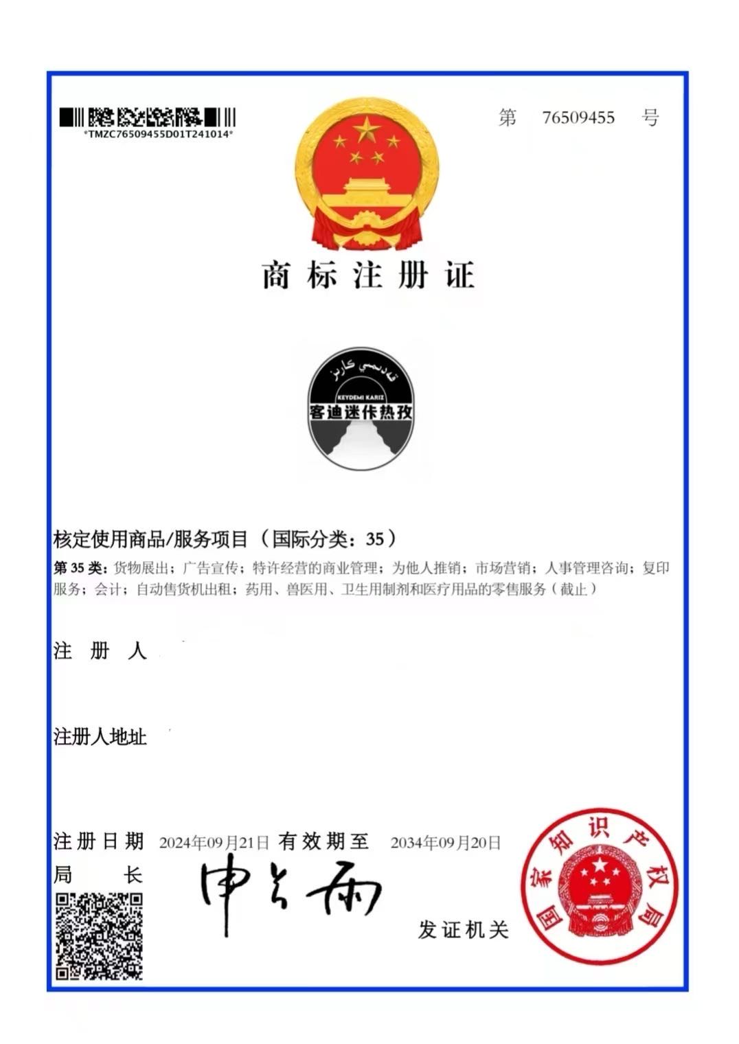 بۇ ماركا 35 - تۈر ئېلان، توردا سېتىش، ۋاكالىتەن سېتىش مۇلازىمىتى تۈرىگە رويخەتكە ئالدۇرۇلغان بولۇپ، باھاسى 12 مىڭ يۈەن .
