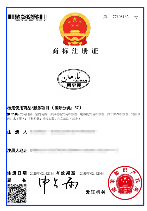 بۇ ماركا 37 - تۈر قۇرۇلۇش، بېزەكچىلىك مۇلازىمىتى، ئاپتومبىل رېمونت قىلىش،توك يوللىرىنى رېمونت قىلىش، ماشىنا يۇيۇش، چاق ياماش، كىيىم يۇيۇش، يانفون رېمونت قىلىش، ئېلېكتىر ئۈسكۈنىلىرىنى ئورنىتىش ۋە رېمونت قىلىش ، ياغاچچىلىق تۈرلىرىگە تىزىملىتىلغان بولۇپ، باھاسى 15 مىڭ يۈەن.