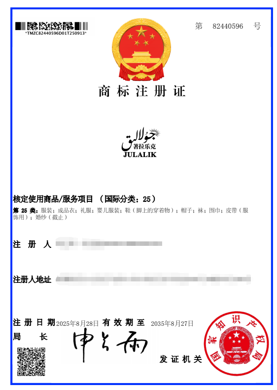 بۇ ماركا 25- تۈر كىيىم-كېچەك،توي كۆينەك، مۇراسىم كىيىمى، ئاياغ،دوپپا،پايپاق، شارپا، بەلباغ تۈرىگە رويخەتكە ئالدۇرۇلغان بولۇپ، باھاسى12مىڭ يۈەن .