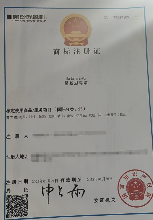 بۇ ماركا 25- تۈر كىيىم-كېچەك، مۇراسىم كىيىمى،بالىلار كىيىمى، ئاياغ،دوپپا،پايپاق، بەلباغ تۈرىگە رويخەتكە ئالدۇرۇلغان بولۇپ، باھاسى15مىڭ يۈەن .